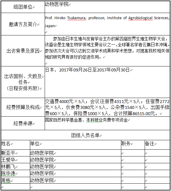 因公临时出访公示表