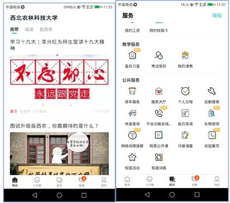 学生服务:包括学生课表、学生成绩、自习室查询、考试安排、校园卡服务、移动迎新、移动离校、教室使用申请、家庭经济困难认定申请、学生临时困难补助申请、学生学费减免申请(后四个即将上线)等功能。