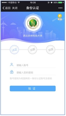 3. 进入“身份认证”界面,输入我校统一身份认证账号(学号或工号)和密码