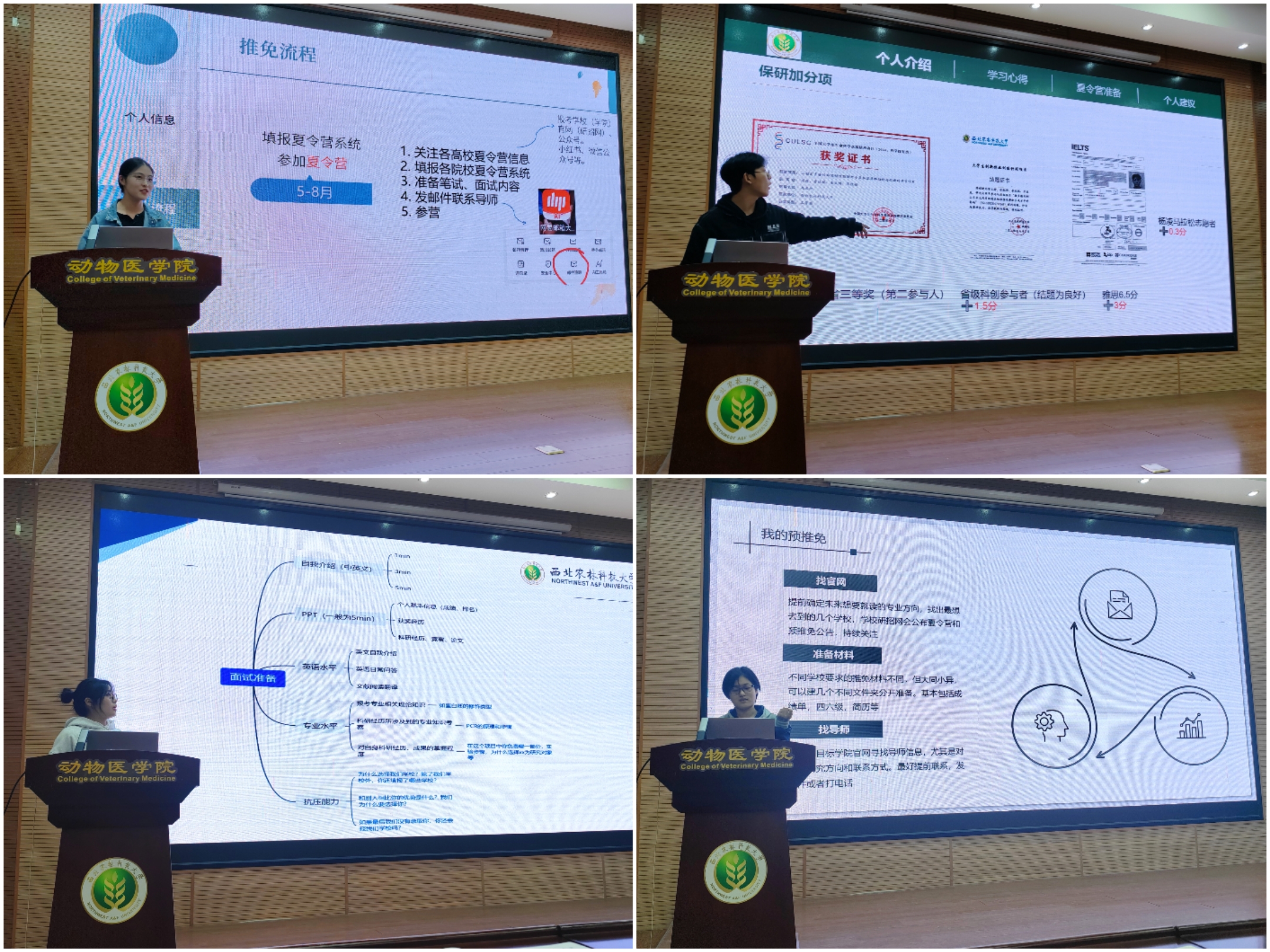 兽医专硕推免的王淼同学围绕推免文件,详细讲解了普通推免、“双一流”推免、卓业农林人才计划推免、奖励指标(兽医专硕)推免的区别。