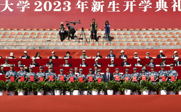 9月10日,学校在北校区田径场隆重举行2023年新生开学典礼暨教师节表彰大会。校长吴普特在大会上讲话,校党委常务副书记邬小撑主持大会。