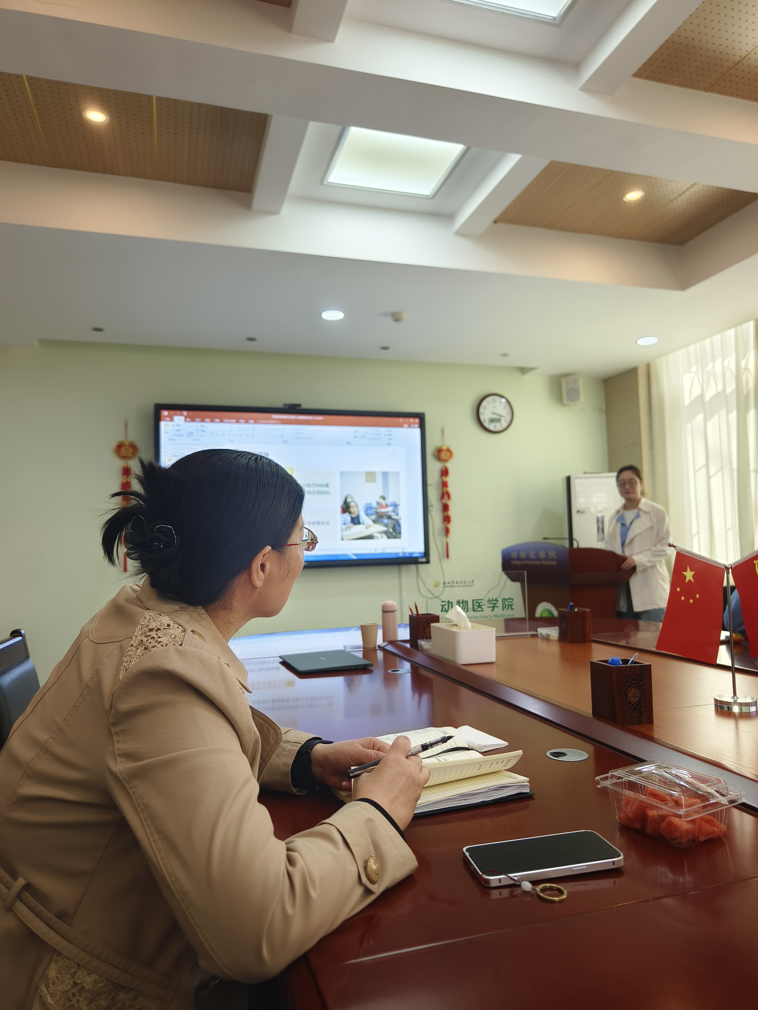 为了更好地为学生们提供帮助,杨红老师列出了体系大纲。大二阶段主要侧重于职业认知与基础赋能,大三阶段培养学生们的技能深化与项目实战能力,大四阶段为学生们创业、就业提供帮助,进行资源对接,大五阶段则倡导学生们进行实习就业,转化自己的成果。在这些阶段中,作为企业导师,老师将在专业知识模块为学生们提供《兽医前沿技术解析》《兽医临床技术进阶》等课程,在职场技能模块着重培养学生们职场沟通的能力和职场礼仪,同时提供职业性格测评和岗位适配分析。在双创教育模块则从大二启蒙、大三实战、大四加速的规划上为学生们提供帮助。在自由交流环节,穆杨老师提出了自己的意见。穆老师希望企业能为学生们提供实践机会,也多给学生们传授简历制作的知识和路演训练,提高学生们在就业市场的竞争能力。“现在兽医行业的现代化集成度很高,学生们需要从学校走入实践中去。”