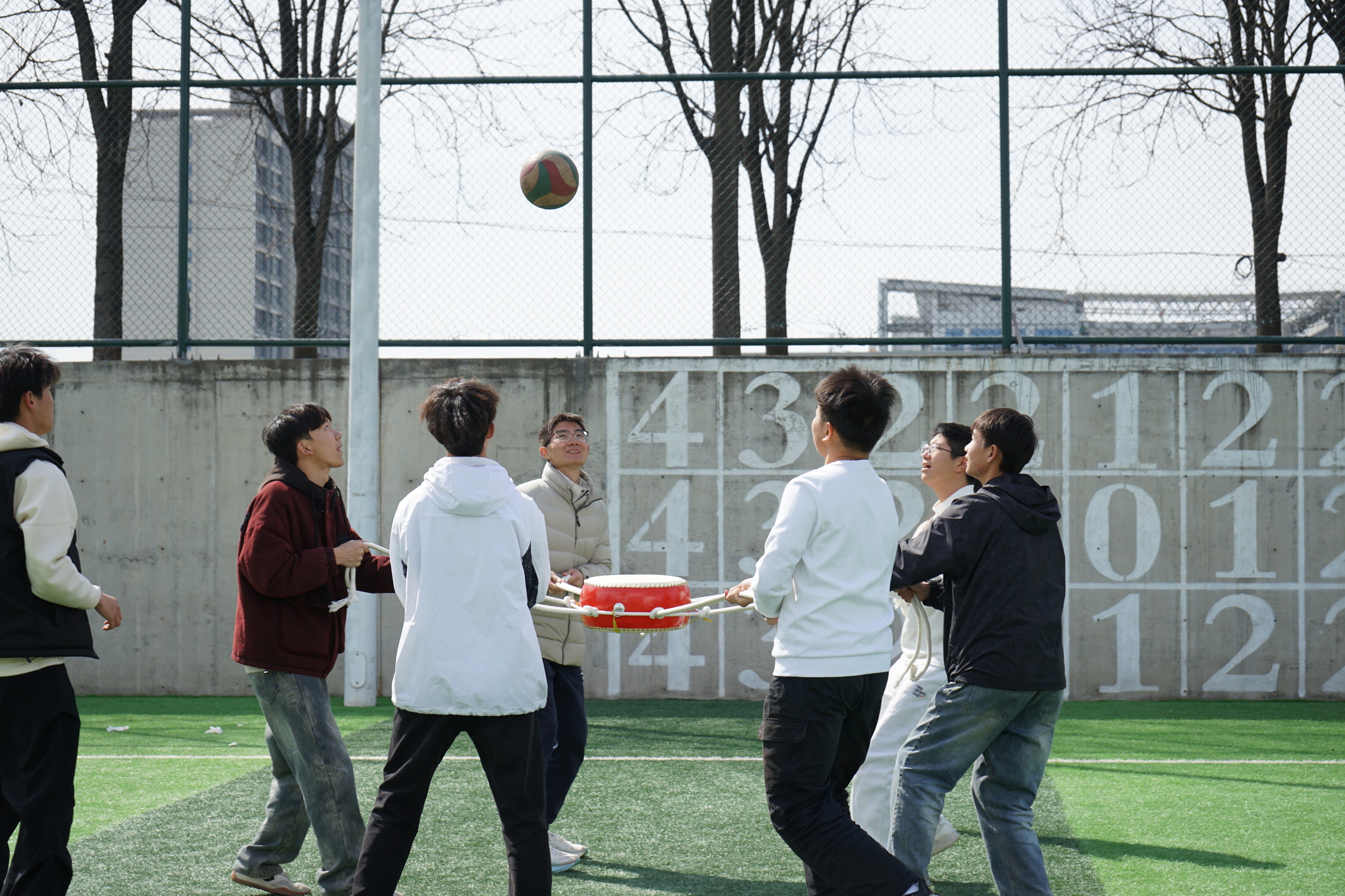 活动共设置6项创意游戏,兼顾趣味性与挑战性。在“你划我猜”环节,队员们通过夸张的肢体语言和默契配合,争分夺秒传递词语信息,现场笑声不断;“投掷网球”考验精准度与策略,参赛者根据距离选择得分难度,展现了胆大心细的竞技精神;“鼓舞人心”项目中,六名队员齐心协力控制鼓面垫球,每一次成功垫球都引发阵阵欢呼,将团队协作的重要性体现得淋漓尽致。随后的“听前奏猜歌”环节,各队成员化身“中华小曲库”,凭借敏锐反应和丰富积累抢答歌名;“拿长杆绕固定杆跑”则是对协调性与速度的双重考验,队员们手扶长杆灵活穿梭,宛如一条游龙,引得围观同学连连喝彩。最后的“321请回答”环节,题目涵盖知识广度与思维敏捷度,参赛选手在紧张倒计时中快速作答,既比拼脑力又考验心理素质。活动现场气氛热烈,参赛队员全情投入其中,观众席掌声与加油声此起彼伏。一名参赛队员表示:“‘鼓舞人心’让我们意识到,只有每个人都专注配合,团队才能走得更远。这种凝聚力正是宿舍生活的缩影。”另一名活动参与者则对“拿长杆绕固定杆跑”印象深刻:“看似简单的绕杆跑,实际操作中需要高度同步,稍有失误就会‘人仰马翻’,但大家一起克服困难的过程特别有意义。”活动负责人表示,“宿舍是校园生活的最小单元,也是情感联结的重要纽带。通过这类活动,我们希望激发学生的集体荣誉感,为构建和谐校园注入更多活力。”