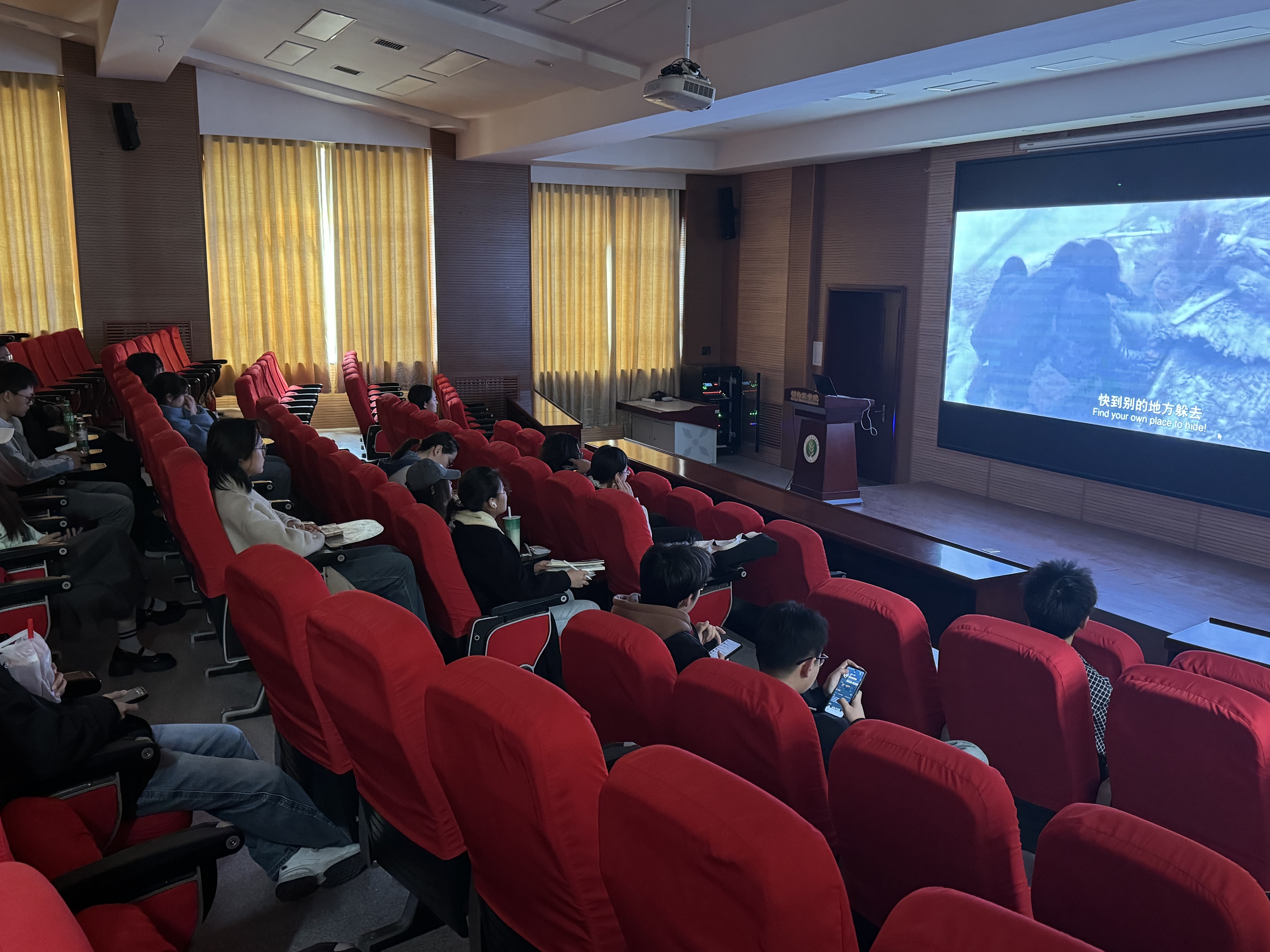 为铭记历史、缅怀先烈,同时激发学生的爱国情怀与奋进精神,2025年3月15日,纪检生活部特举办了一场以“光影忆峥嵘,奋进新征程”为主题的学生观影活动。本次活动精选了经典影片《金陵十三钗》作为观影内容,吸引了众多学生参与。