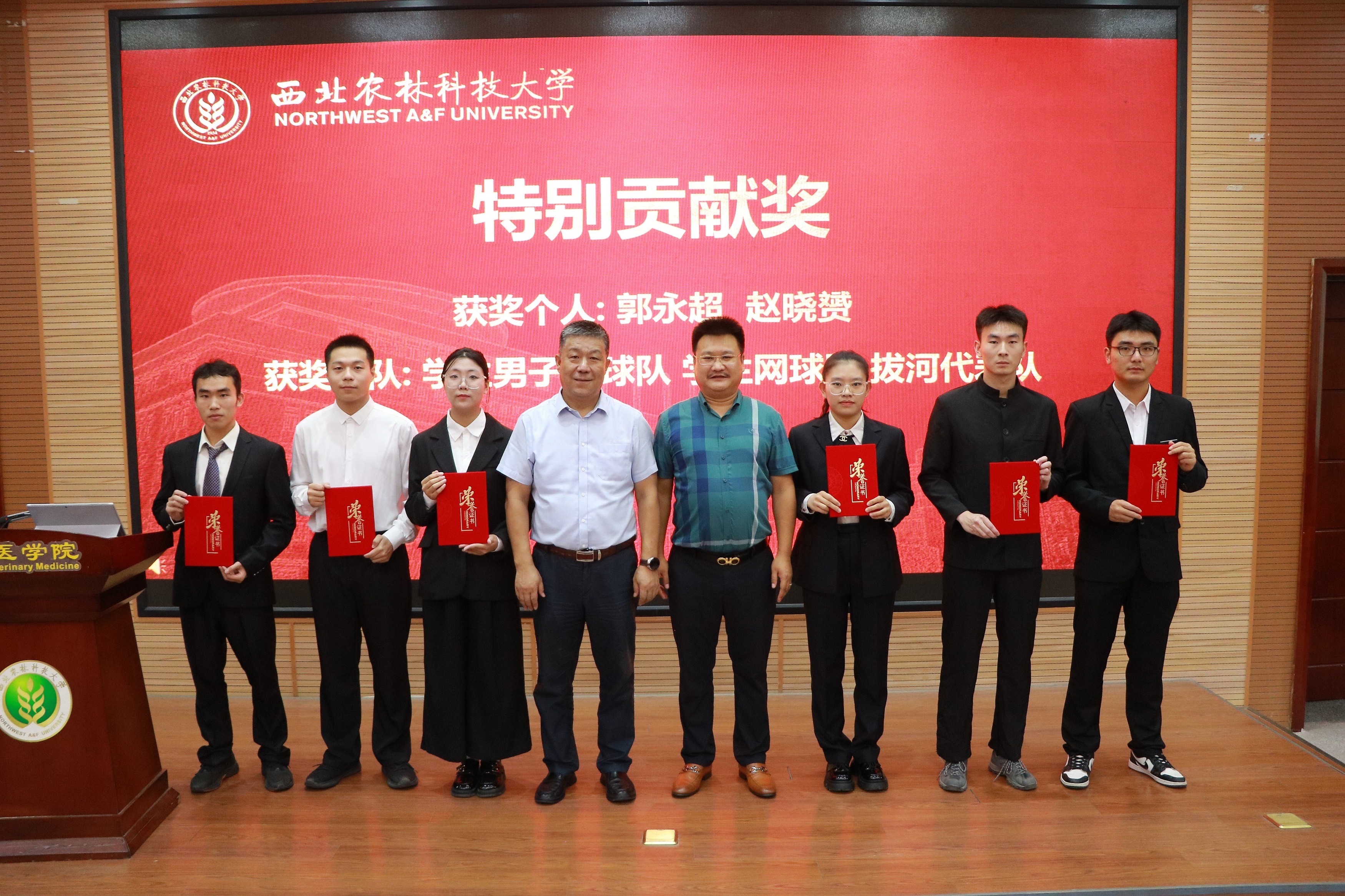 学院党委书记吴继东首先对获奖集体和个人表示祝贺,对我院师生的共同努力予以肯定,对陕西圣奥动物药业有限公司长期以来支持学院发展表示感谢。他对全体同学提出四点要求:一是加强理论学习,坚定理想信念。广大学生要坚定不移听党话,跟党走,坚持用习近平新时代中国特色社会主义思想凝心铸魂。二是锤炼品德修为,锻造品行意志。积极参加校园文化活动、志愿服务和各类实践活动,继承中华民族光荣传统,传承红色基因,赓续红色血脉,在实践中磨炼自己,完善人格。三是树立先进典型,坚持全面发展。希望全体同学应当以他们为榜样,精准把握自身兴趣及特长,积极参与体育活动,在争夺学院集体荣誉的过程中实现个人价值。四是树立远大理想,心怀“国之大者”。希望同学们志存高远,脚踏实地,厚植爱农情怀,练就兴农本领,争做新时代卓越兽医人才,让青春在全面建设社会主义现代化国家的火热实践中绽放绚丽之花。