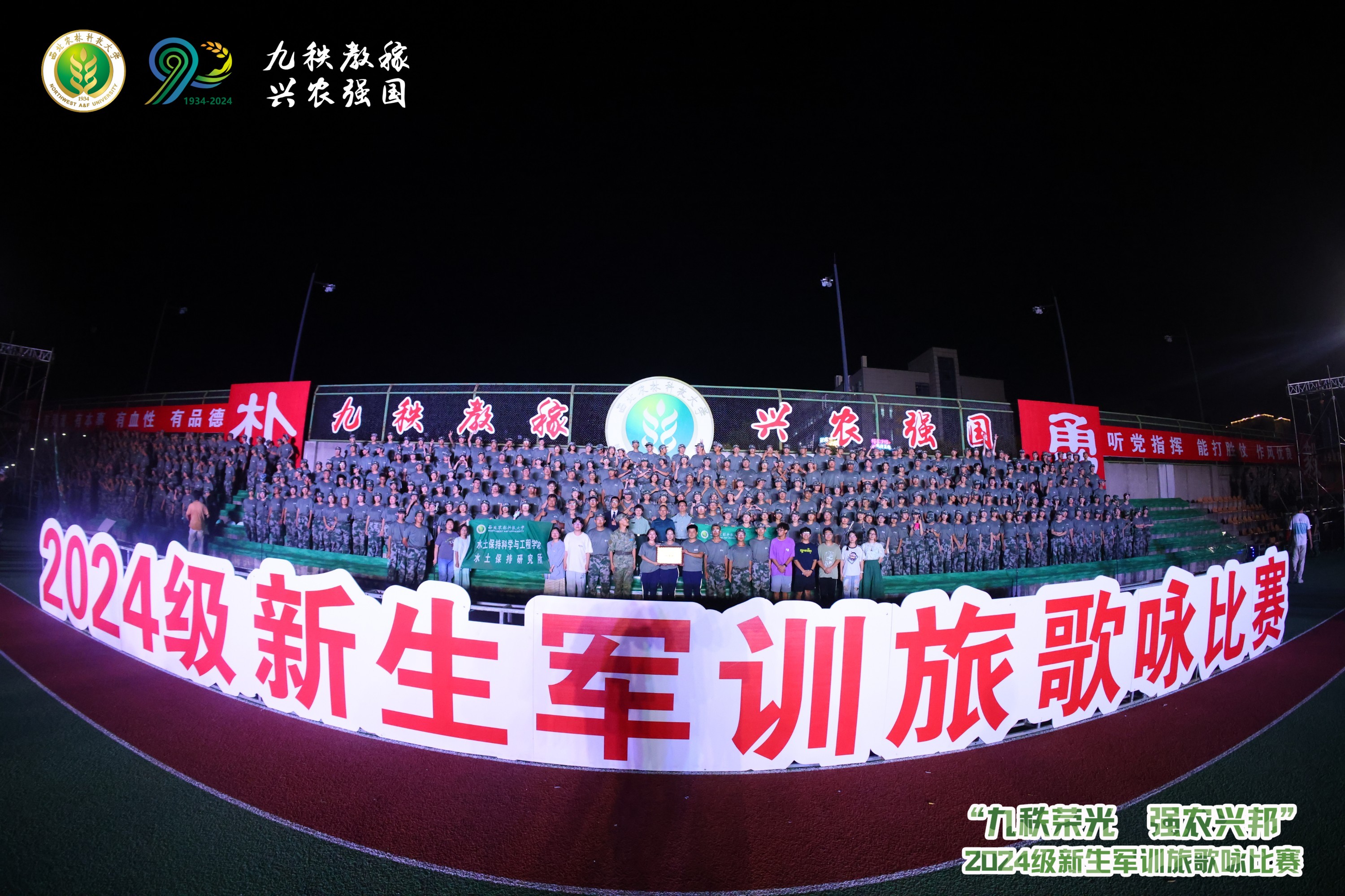 9月4日,“九秩荣光,强农兴邦”2024级新生军训旅歌咏比赛在北校区田径场隆重举办。我院与水保学院共同参演的节目《精忠报国》《凤鸣高岗》荣获全校一等奖。
