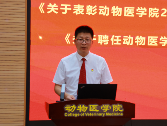 院长黄勇教授代表学院全体师生向2024届毕业生们送上美好祝福,向受表彰的优秀毕业生和优秀学生干部表示祝贺,向辛勤耕耘的全体老师致以崇高的敬意和衷心的感谢。黄勇院长带领全体师生回顾了学院发展历程及取得的成果。他强调全体毕业生们要始终牢记“诚朴勇毅”的校训,发扬西农精神,胸怀感恩之心,砥砺奋进,肩负起时代赋予的使命和责任,为实现中华民族伟大复兴贡献出西农动医人的智慧和力量!